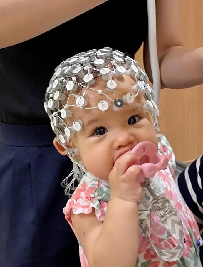 Brain signals collected from EEG are full of information about a child’s development. They tell us whether the brain and related skills are developing along the right direction and whether different parts of the brain are “talking” and cooperating with each other. Many times, we can use these signals to predict later behavioural and cognitive skills. We hope EEG can one day help us identify children who need individualised intervention(s) and change their developmental trajectory for the better!